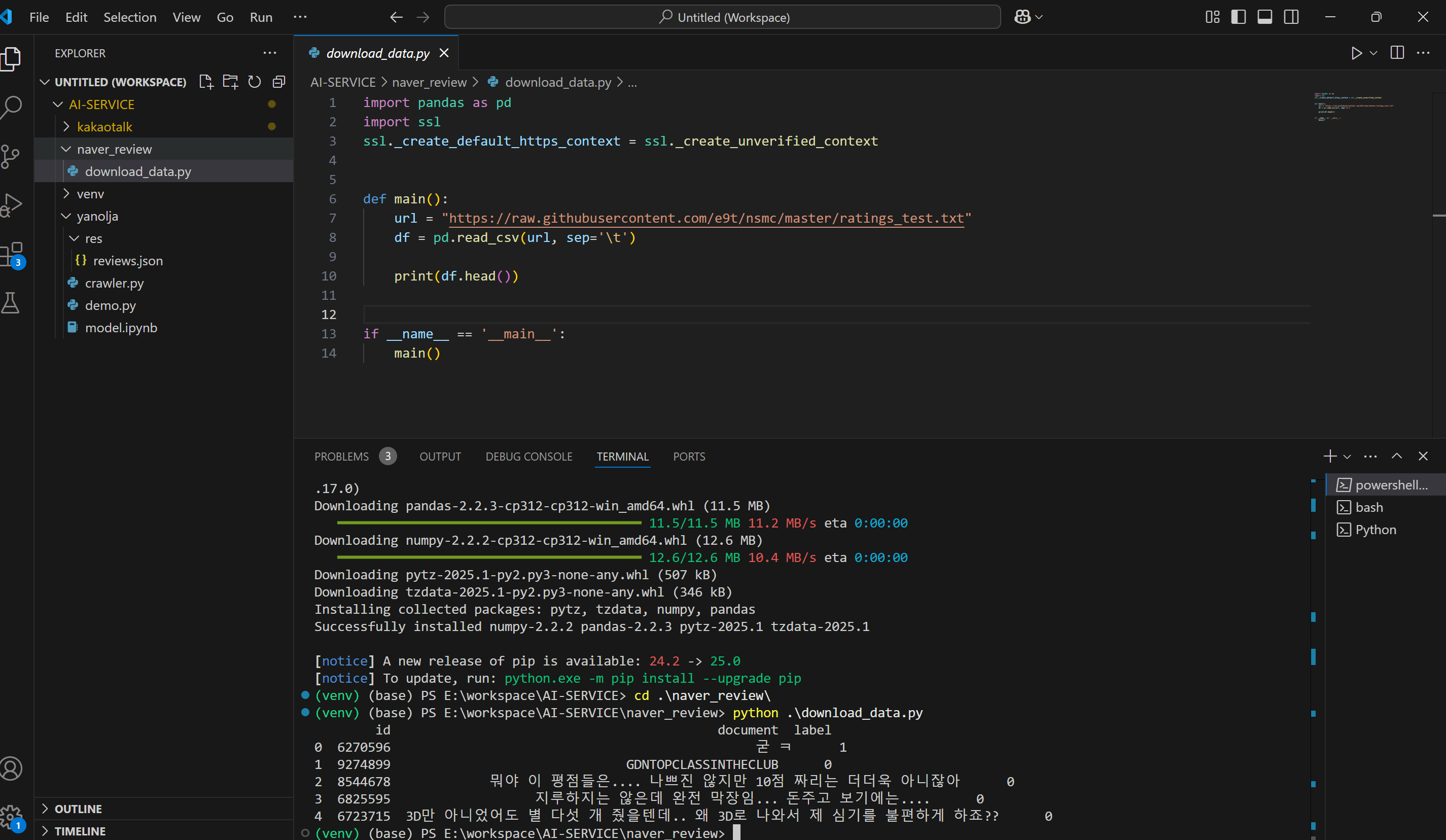이번 강의에서는 네이버 리뷰 데이터를 분석하고 AI 고객센터를 개발하는 과정을 학습했다. OpenAI의 GPT API를 활용하여 FAQ 자동 생성, Q&A 응대 시스템 개발, 그리고 VectorDB를 활용한 검색 기능을 구현하는 내용을 다뤘다.