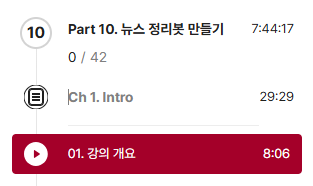 이번 강의를 들으면서 실질적으로 뉴스 데이터를 다루는 방법과 AI를 활용해 정보를 정리하는 과정에 대해 깊이 이해할 수 있었습니다. 특히 단순한 코드 예제나 이론 중심의 강의가 아니라, 실제 프로젝트를 하나씩 완성해 나가는 방식이라 배운 내용이 확실히 체화되는 느낌이었습니다.